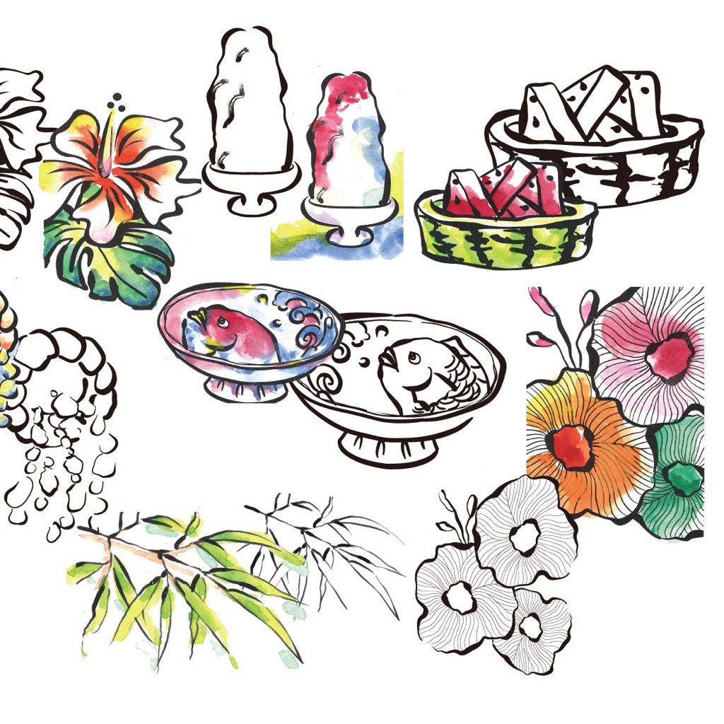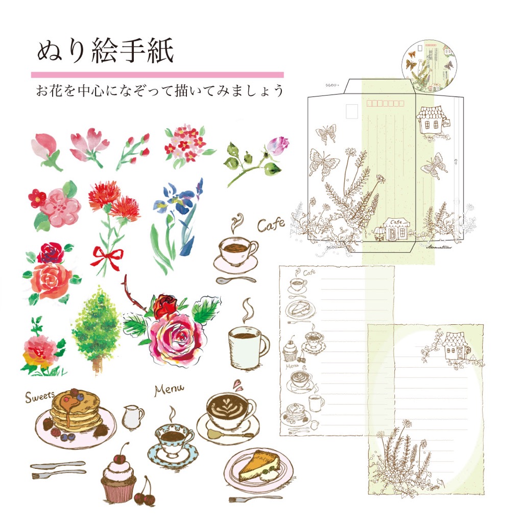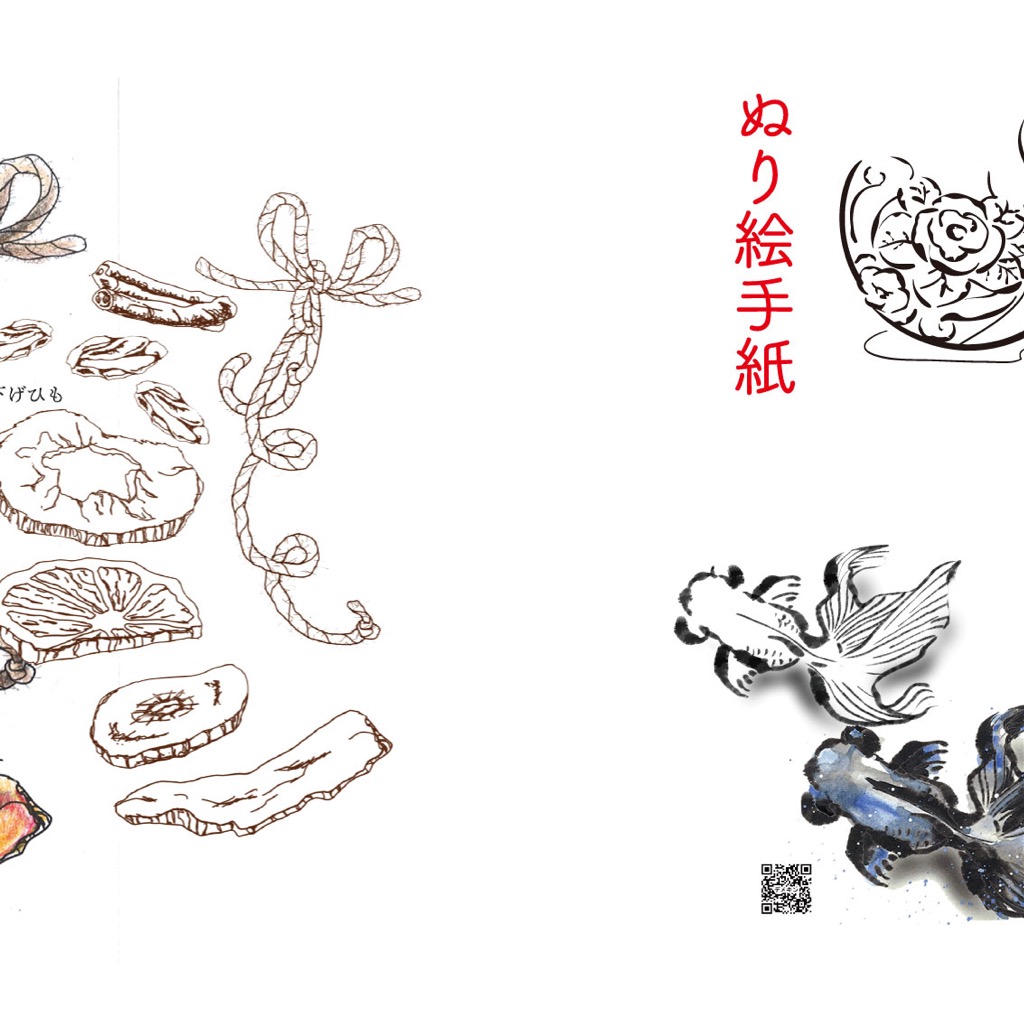 ハガキや封筒にした下絵を5枚ほどご用意します。塗り方はどんどんご質問くださいませ。